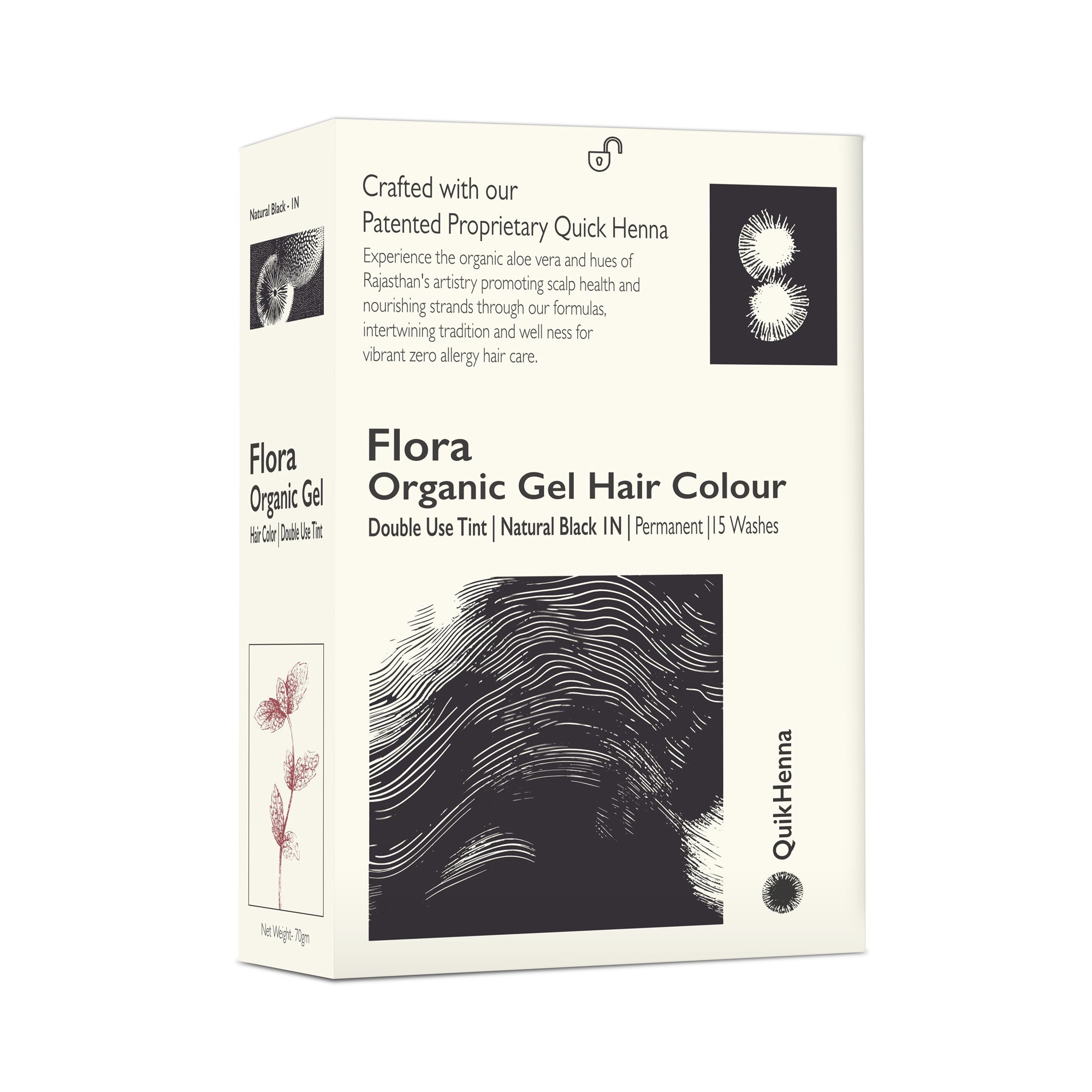 QH+ QuikHenna FLORA Organic Gel Double Use Hair Color- 70gm- 1N Natural Black