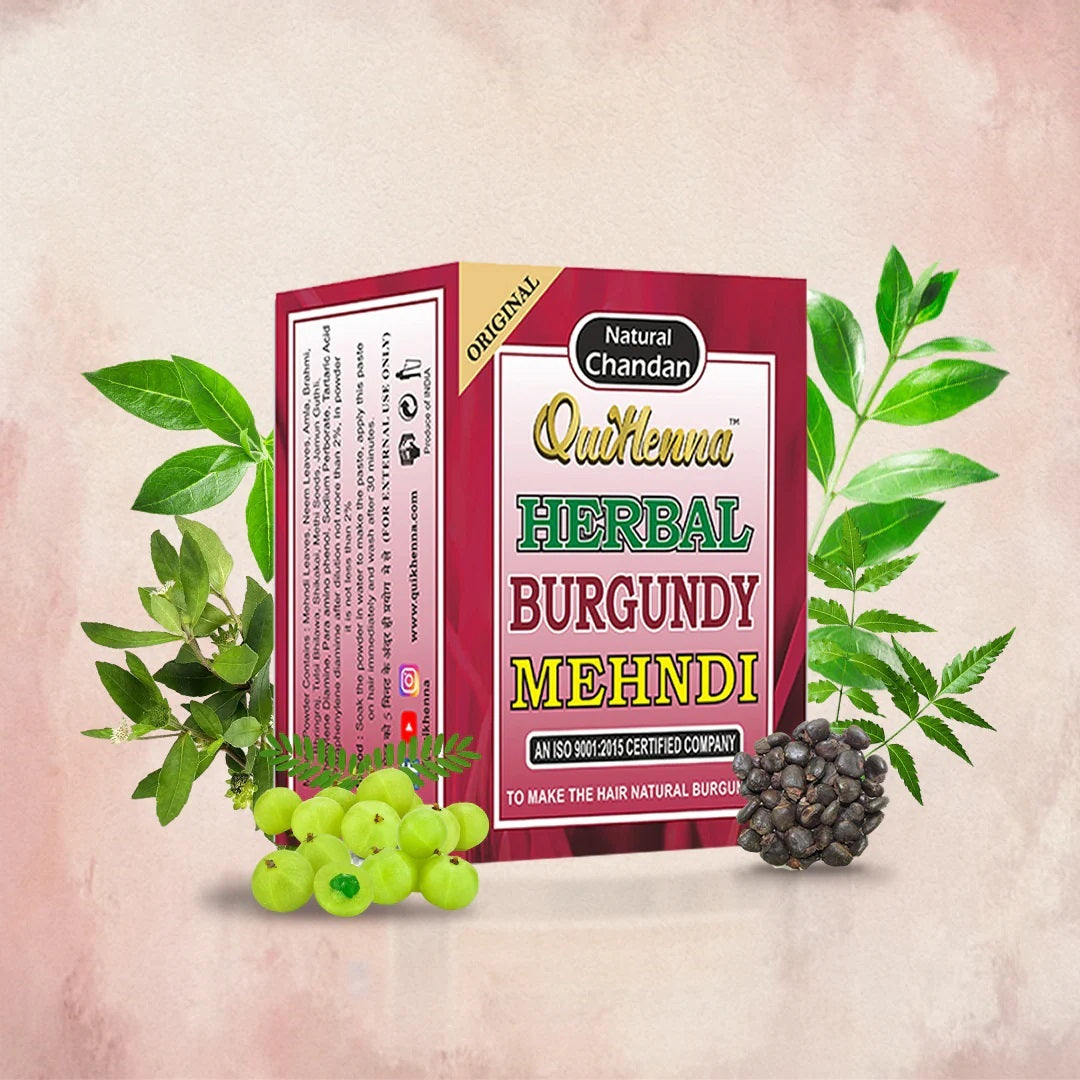 Unveil the richness and charm of burgundy tones with QuikHenna Herbal Burgundy Mehndi. This premium, all-natural formula empowers you to fashion captivating, enduring burgundy henna designs while simultaneously nurturing your hair and skin from root to tip. Infused with a potent amalgamation of Ayurvedic herbs such as mehndi leaves, neem, amla, brahmi, and more, this herbal burgundy mehndi presents a gentle, safe alternative to harsh chemical dyes.